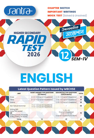 ‘HS Rapid Test 2026 – Class 12 Sem 4 (English)’ is a book of suggestive questions and test papers prepared for the students appearing for their Higher Secondary Semester IV Examination in 2026.