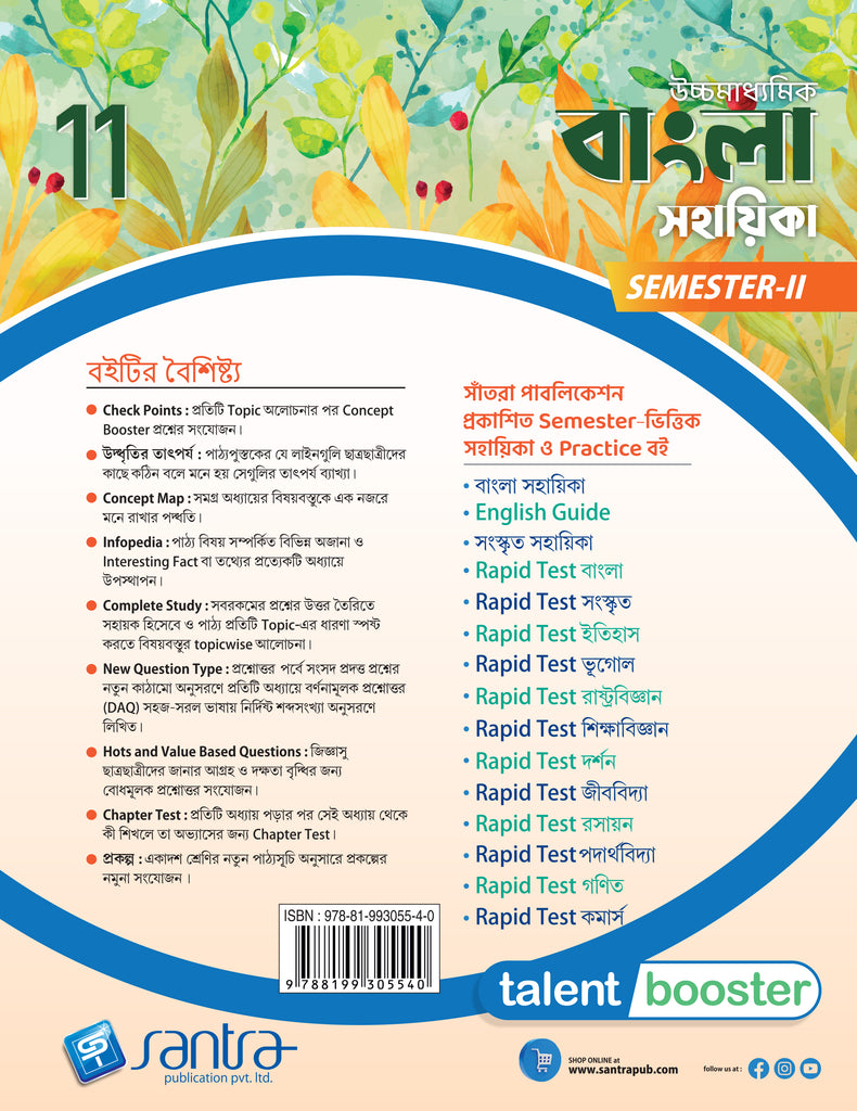 ‘উচ্চমাধ্যমিক বাংলা সহায়িকা– XI’ (সেমিস্টার 2) খুব যত্ন সহকারে বানানো হয়েছে। এই বইতে রয়েছেঃ