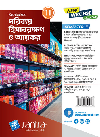 ‘উচ্চমাধ্যমিক পরিব্যয় হিসাবরক্ষণ ও আয়কর’ (Higher Secondary Costing and Taxation) – XI (Semester 2) is a text book prepared for the students of Class 11 under West Bengal Council of Higher Secondary Education. Under the New Curriculum & Syllabus 2024, Class 11 examination will be conducted in two parts – Semester 1 and Semester 2. This book is prepared following the Semester 2 syllabus only.