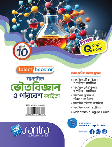‘MadhyamikBhoutobigyan O ParibeshSahayika’ (মাধ্যমিকভৌতবিজ্ঞানওপরিবেশসহায়িকা),class 10 is an authentic Bengali version self-study book from the Santra Talent Booster series based on the class ten syllabus of Physical Science and Environment as prescribed by the West Bengal Board of Secondary Education (WBBSE). It comes with a Free Booklet named Q-Paper Bank. It contains some important MCQs, VSAQs and SAQs from all the chapters with their solutions.