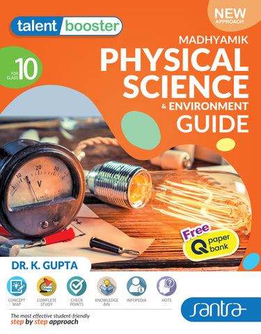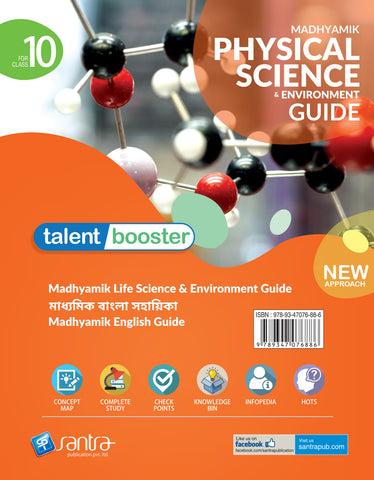 ‘Madhyamik Physical Science & Environment Guide’ – class 10 is an English version reference book for Physical Science & Environment studying under WBBSE curriculum. Comprising 13 chapters, each chapter has been presented thoroughly with Complete Study, Concept Maps, Chapter wise LAQ, SAQ, VSAQ, MCQ, Numerical Problems with solutions, Check Points, Infopedia, Important formulae and Madhyamik Question Gallery. A modern approach has been followed while preparing this book. Knowledge Bin and HOTS have been added for inquisitive students. Ample charts and diagrams have been provided with an attempt to give a clear explanation to the readers.