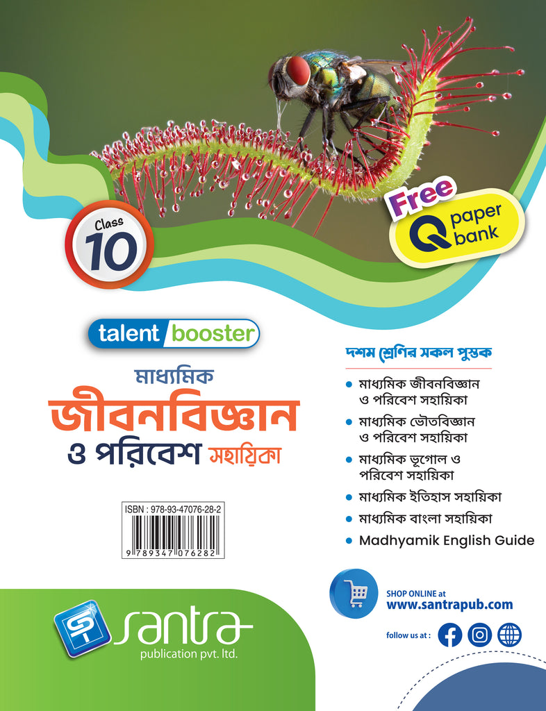 ‘MadhyamikJibanbigyan O ParibeshSahayika’ (মাধ্যমিকজীবনবিজ্ঞানওপরিবেশসহায়িকা), class 10 is an authentic Bengali version self-study book from the SantraTalent Booster series based on the class ten syllabus of Life science and Environment as prescribed by the West Bengal Board of Secondary Education (WBBSE).It comes with a Free Booklet named Q-Paper Bank. It contains some important MCQsand VSAQs from all the chapters with their solutions.